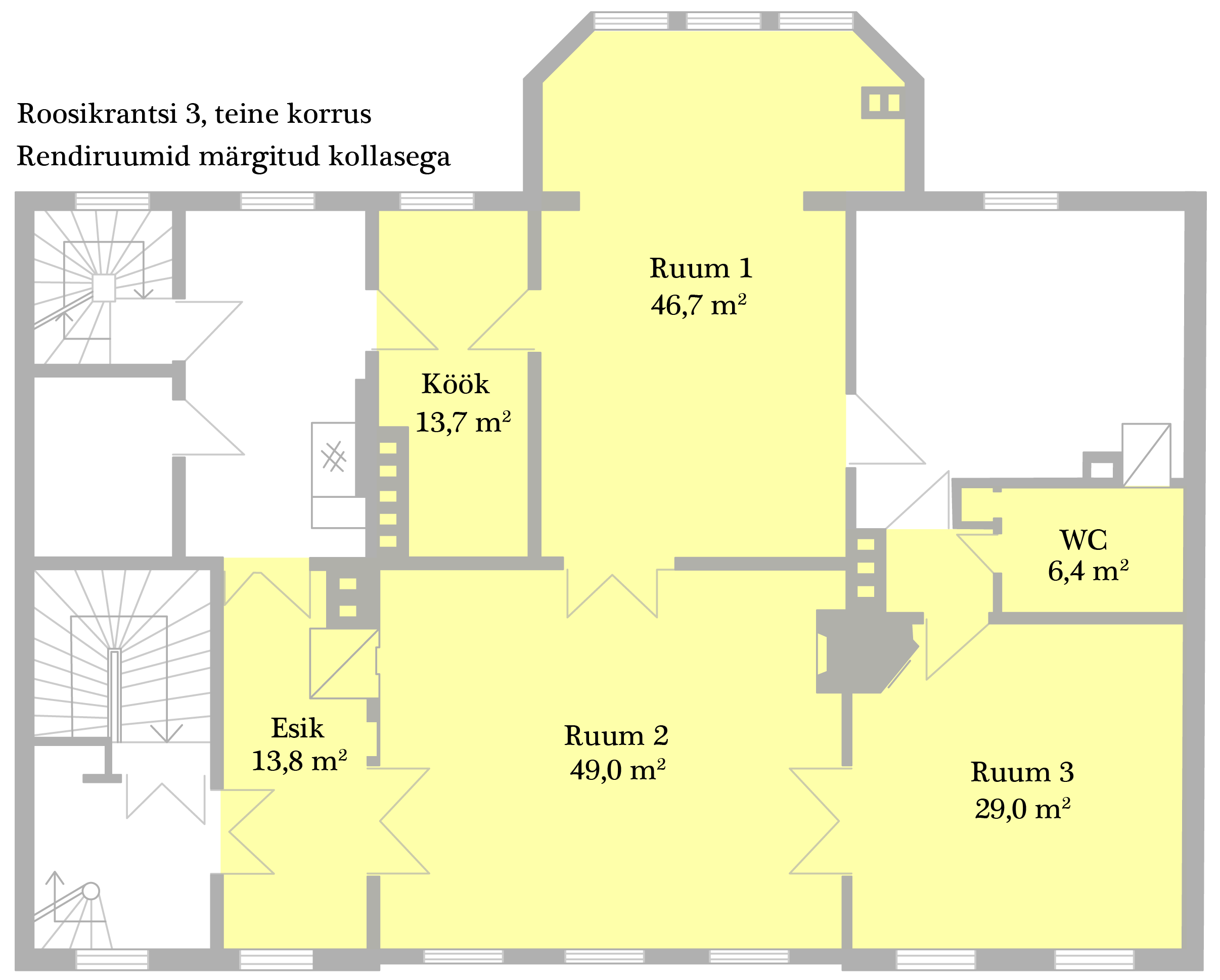 Roosikrantsi 3 on 1878. aastal arhitekt R. Knüpfferi projekti järgi valminud kolmekordne puitmaja. Väljarentimisele kuuluvad ruumid asuvad hoone teisel korrusel. Rentimisele kuuluvad 3 suuremat esindusruumi ning abiruumid.